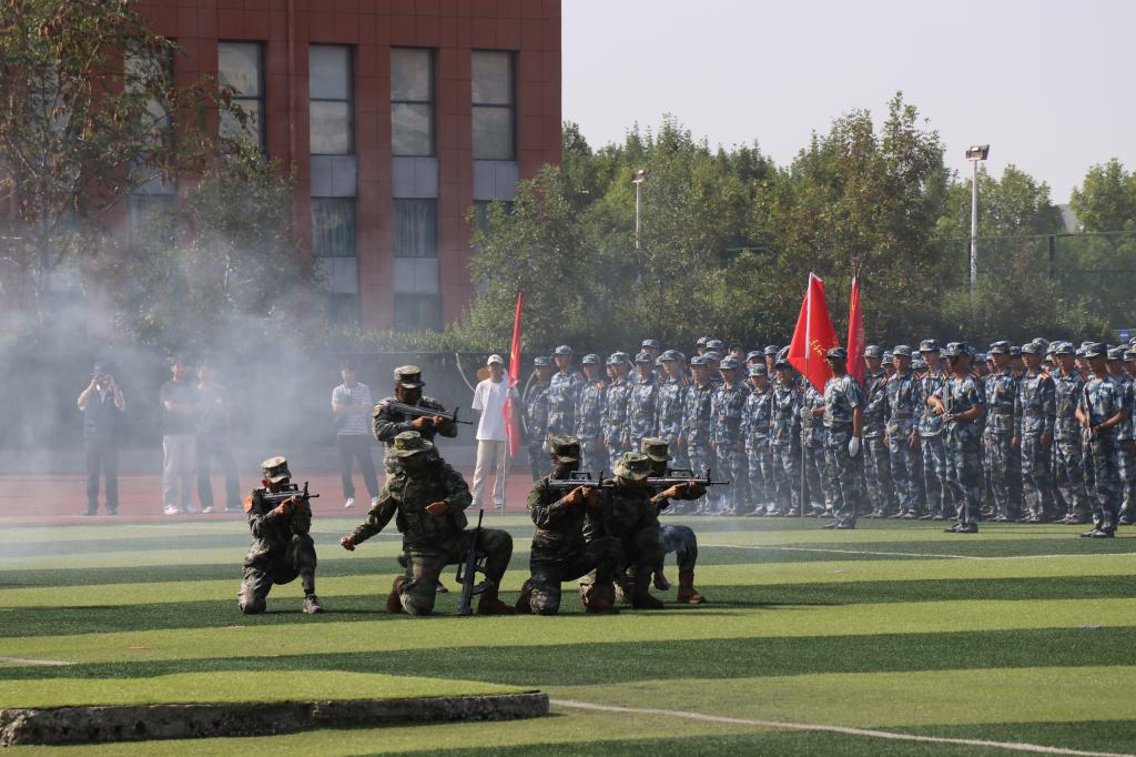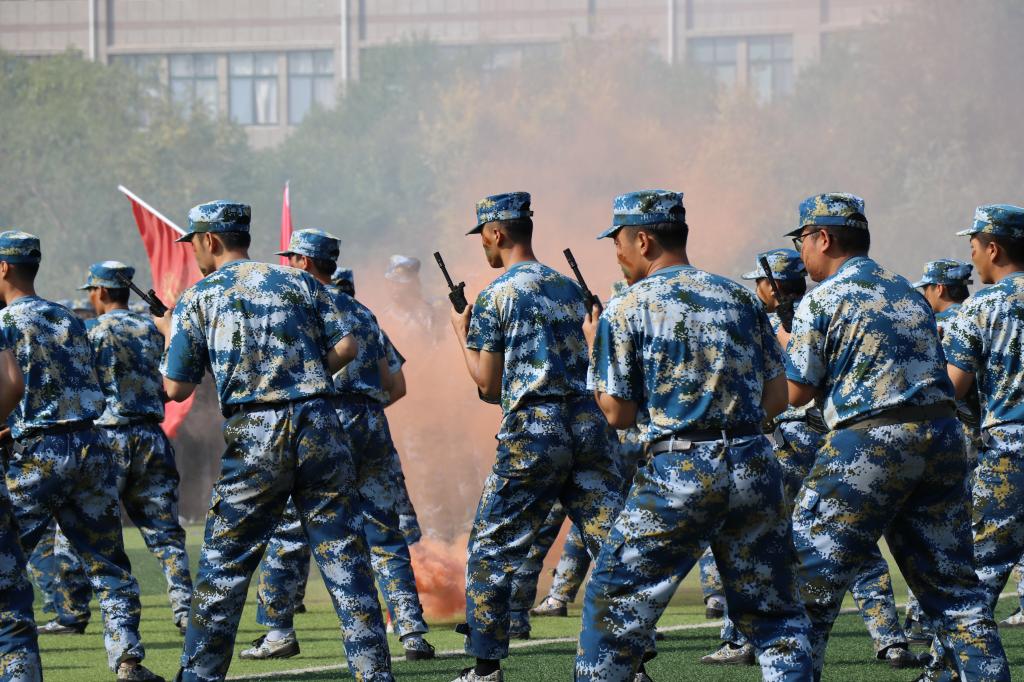 分列式后,参训学生进行了军体拳、刺杀操、反恐战术及擒拿格斗等军事科目汇报表演,展示训练成果。