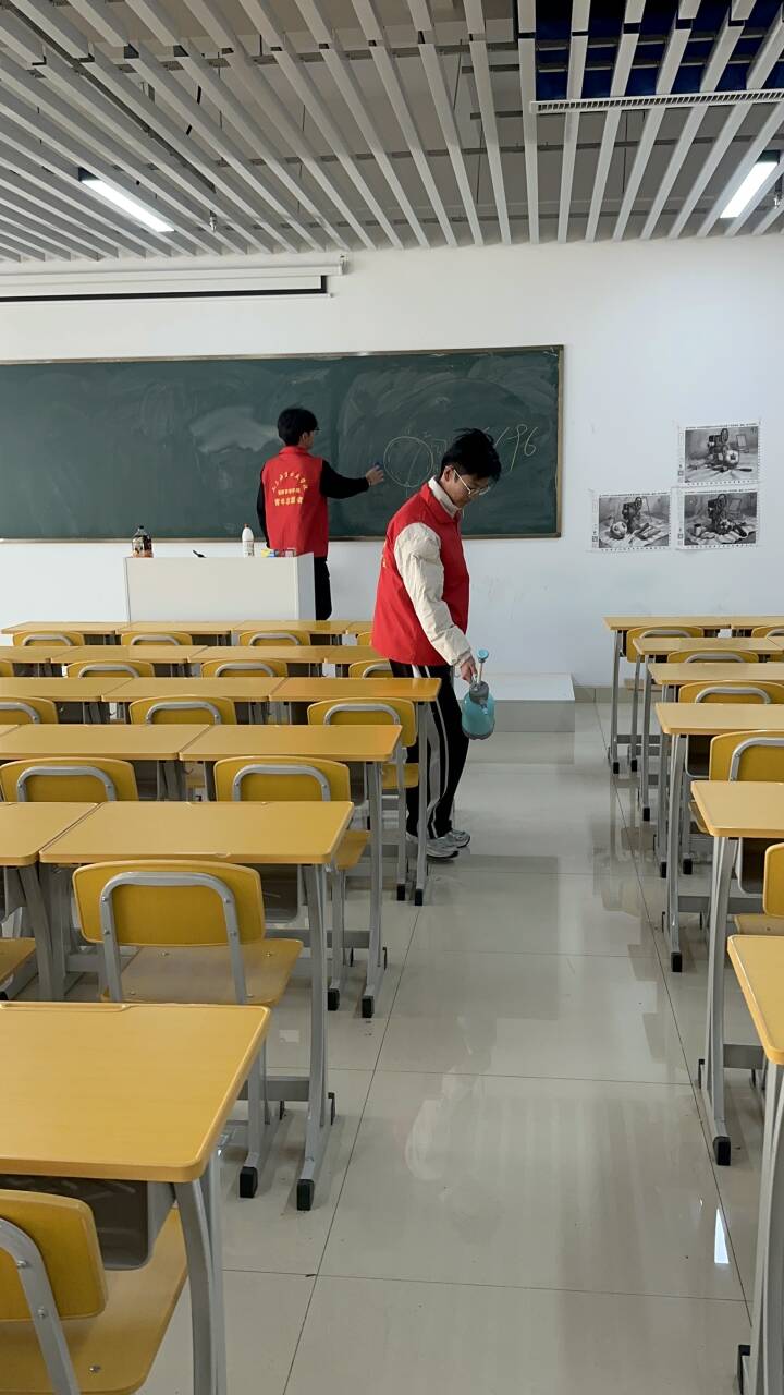 冬季来临,为保障广大师生在安全,卫生的环境中学习与生活,健康管理学院开展了定期的教室和宿舍消毒工作,本次活动由活动负责人戴和平带领十名志愿者在11月6日对教师和宿舍展开了全面细致的卫生消毒工作。