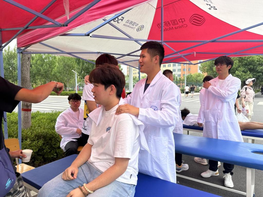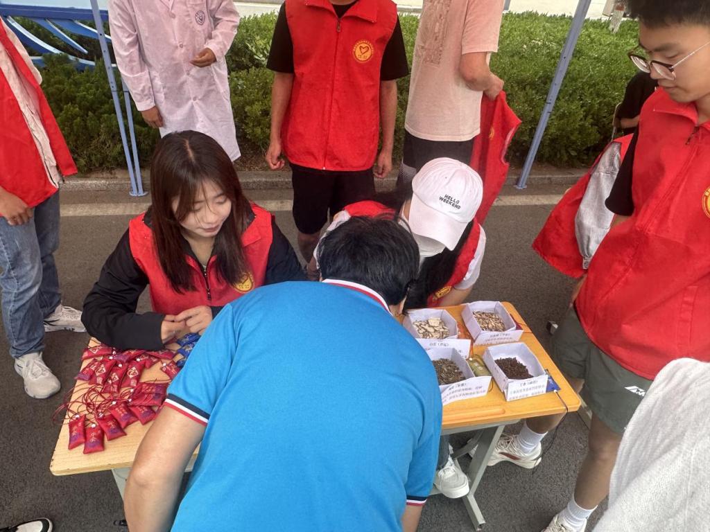 活动分为寻宝游戏、推拿体验、茶包香囊展示、特色茶饮品尝四个环节。活动现场气氛热烈,健康管理学院中医养生推拿社团的学生对同学们进行肩颈部的推拿按摩,并提供社团熬制的特色夏日饮品供学生免费品尝,同时,社团将自制的精致中药茶包、驱蚊香囊进行展示,增添了节日的仪式感,深受学生喜爱。