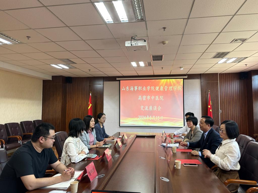 为深化医教协同,加强院校合作,5月15日下午,高密市中医院科教科主任陈涛带领针推、康复、推拿教研室主任一行4人来我校健康管理学院进行座谈交流。健康管理学院院长冯小红、院长助理王晓燕及相关教研部主任和辅导员参加会议。