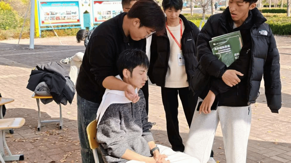而在“经络舒活”体验区,社团的专业推拿服务更是排起了长队。健康管理学院的同学们运用课堂所掌握的经络腧穴理论及推拿手法,为体验者进行肩颈放松、疲劳缓解等操作。他们手法精准,服务热情,其专业表现获得了在场师生的一致好评,也让课堂理论知识在实践服务中得到有效检验与升华。