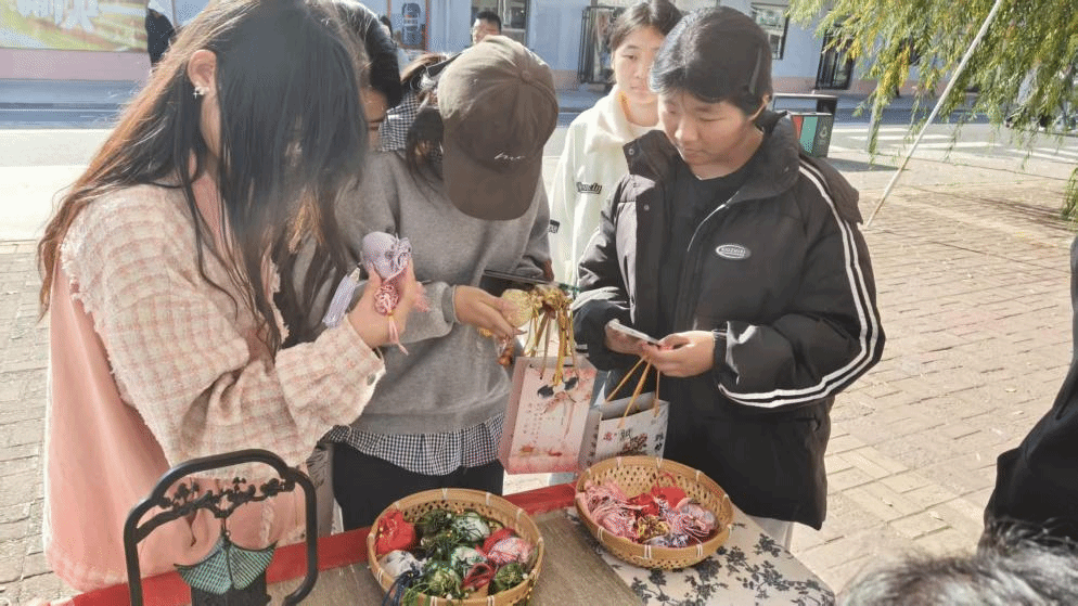 活动现场气氛热烈,吸引了大量师生驻足参与。在“草本守护”区域,由中医康复技术、健康管理等专业学生精心调配、制作的古法香囊备受青睐。社团成员们结合所学中药学与养生知识,耐心讲解不同配方香囊在安神助眠、辟秽防感等方面的功效,将传统中医药文化与现代健康需求紧密结合。